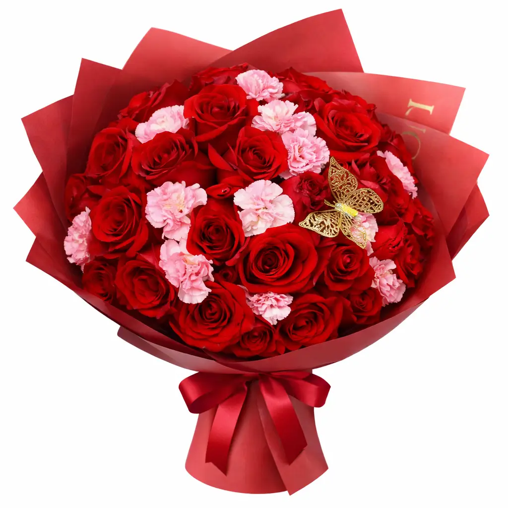 Ramo Dúo con 24 Rosas y Claveles Rosados
